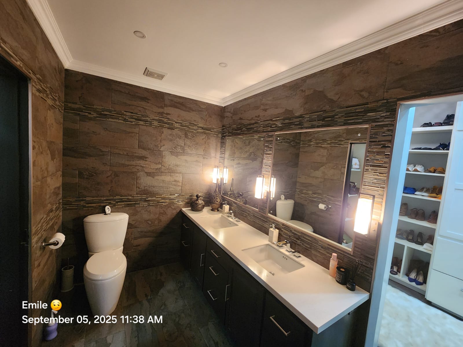 1 massive master suite with two walk-in closets and a massive toilet and bath area.