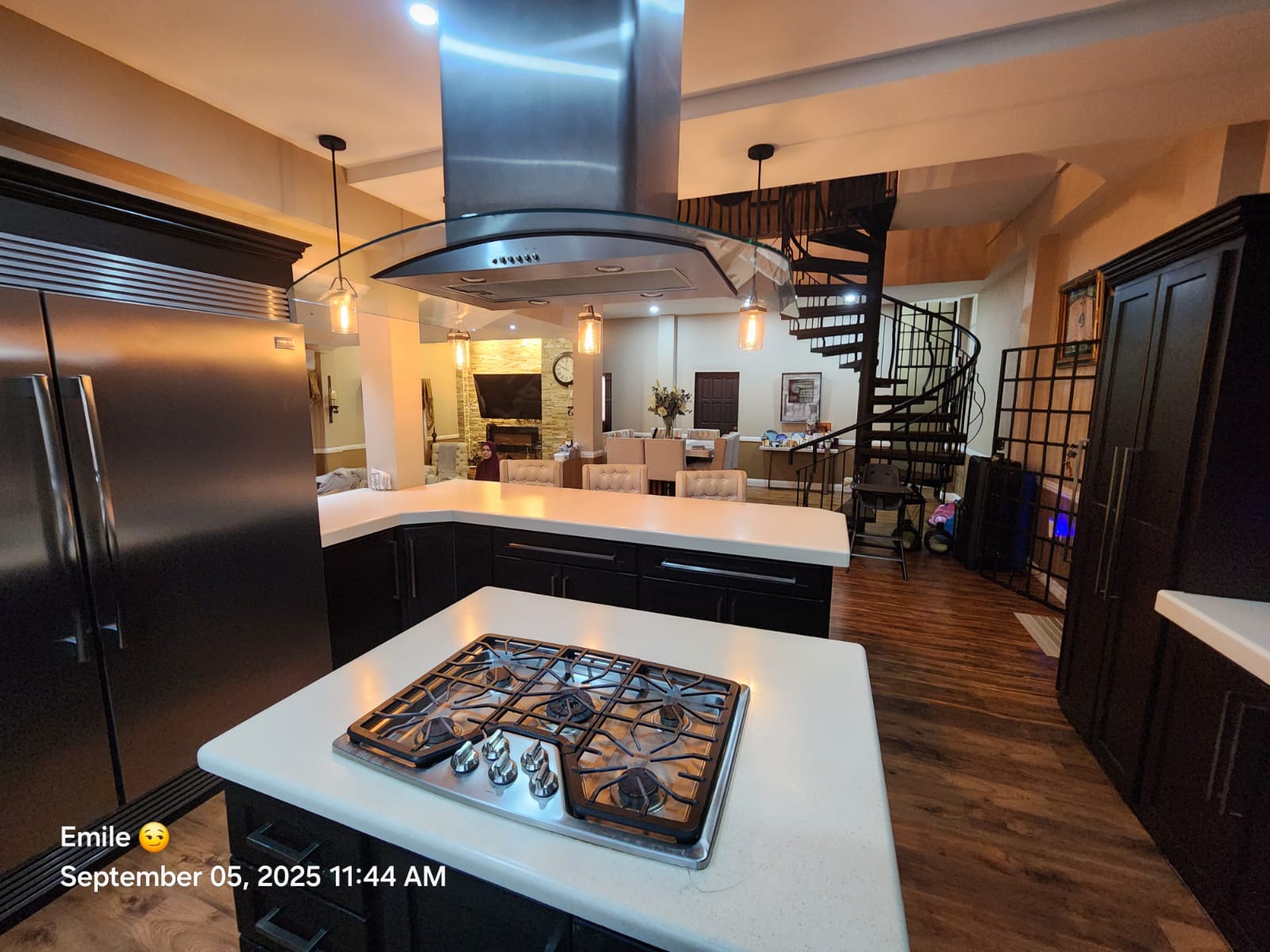 ✨️An open concept well equipped kitchen flows into an open concept living space that has an electric fireplace.
